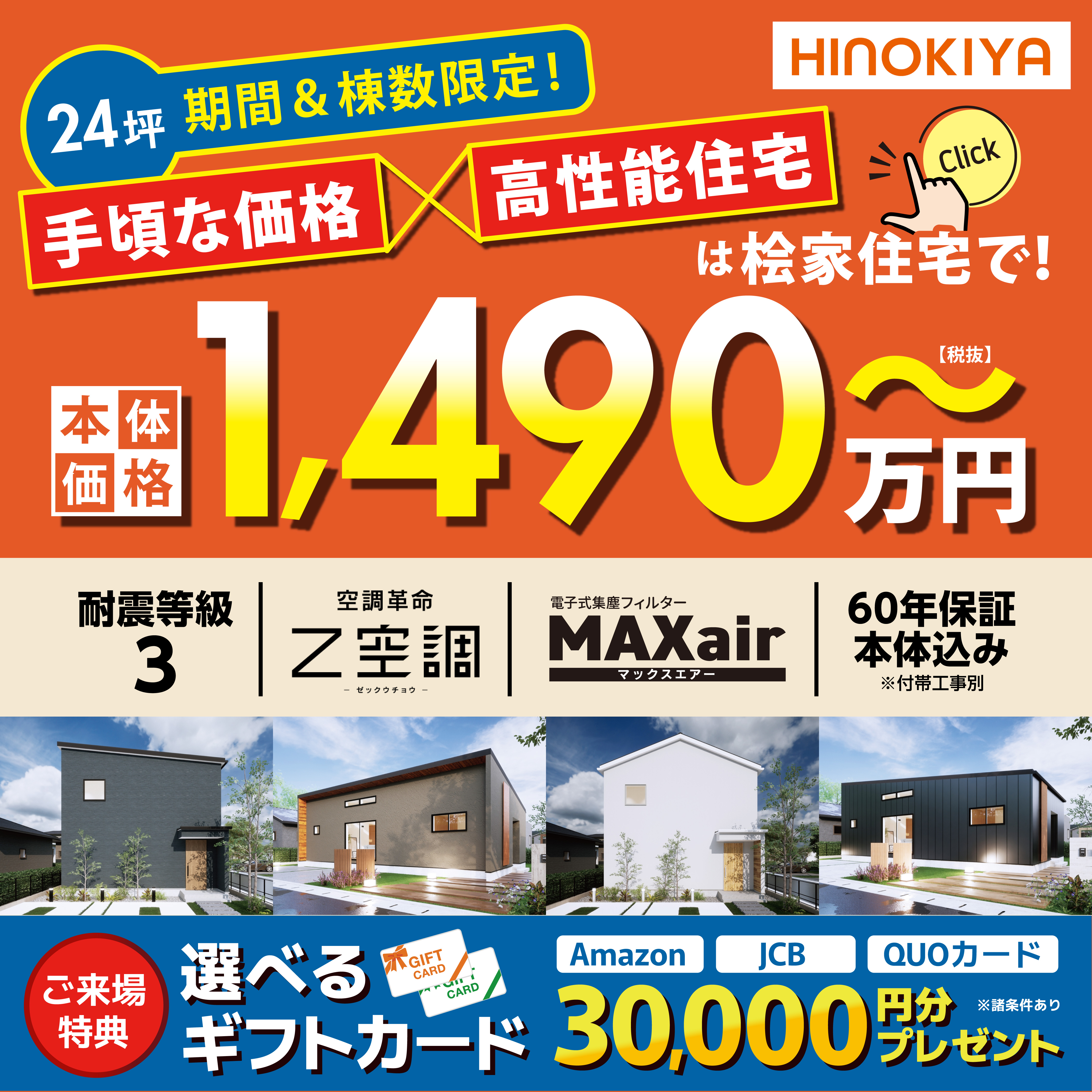 【本体価格1,490万円~】手頃な価格×高性能住宅は桧家住宅で!